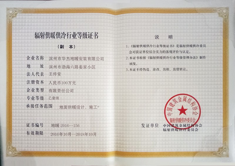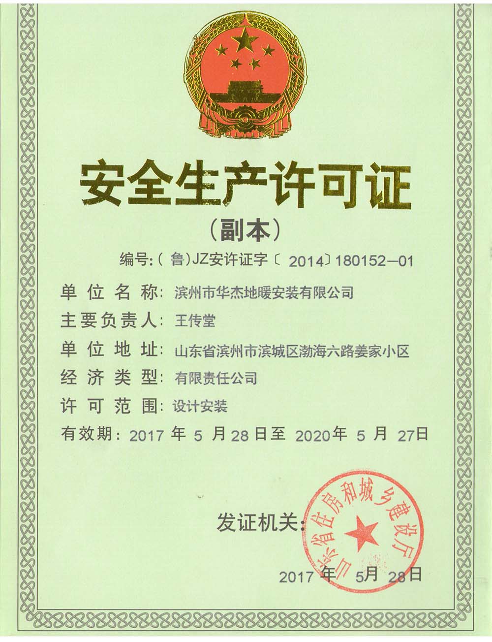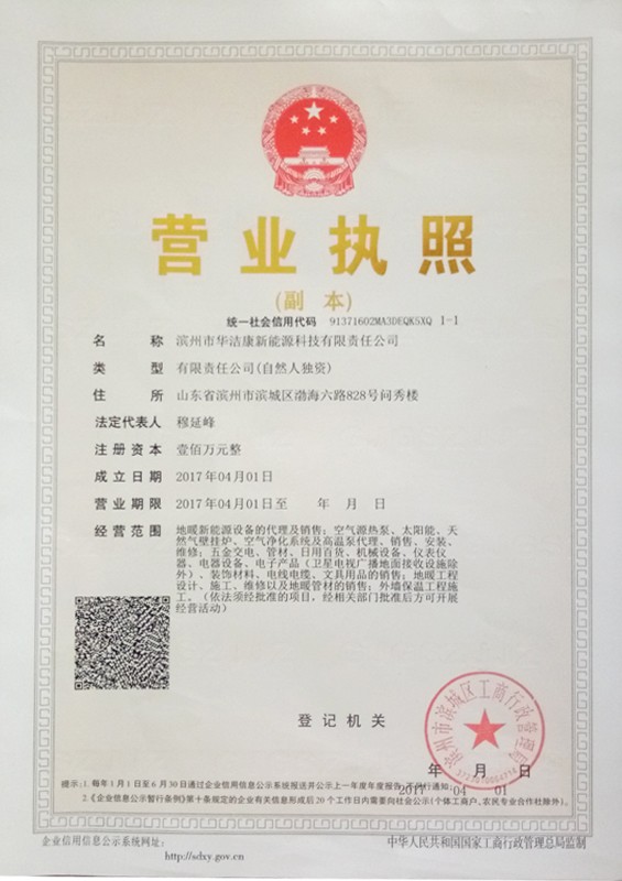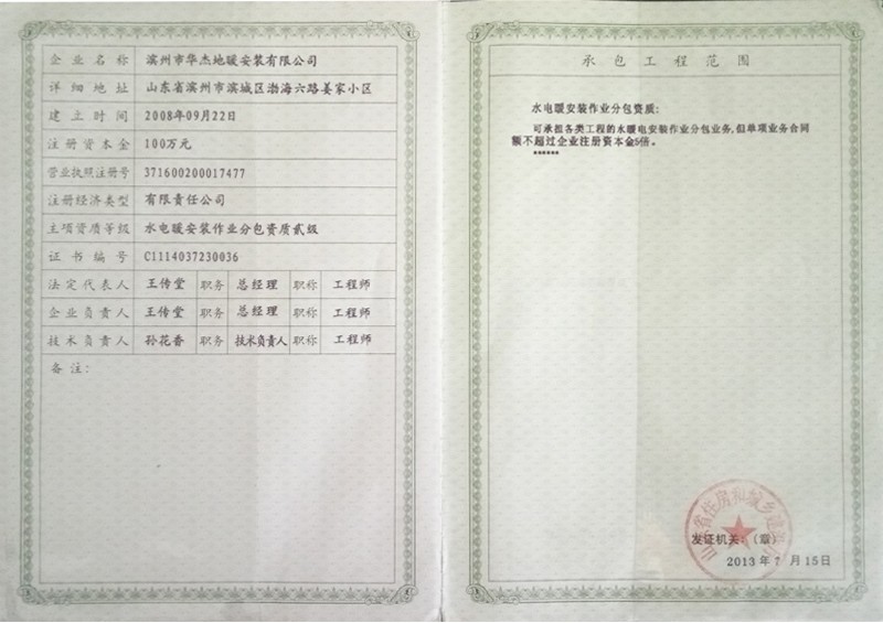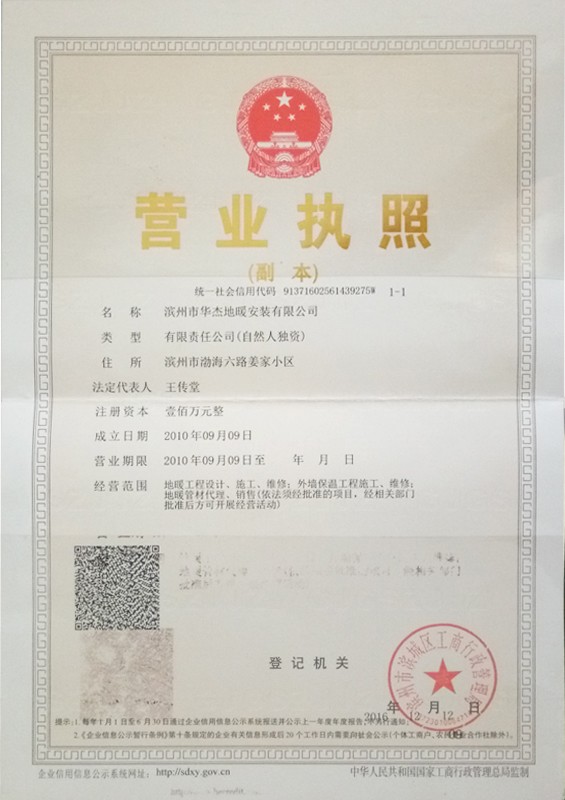 濱州市華杰地暖安裝有限公司營業(yè)執(zhí)照